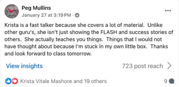 Krista Mashore can not and does not make any guarantees about your ability to get results or earn any money with our ideas, information, tools, or strategies.