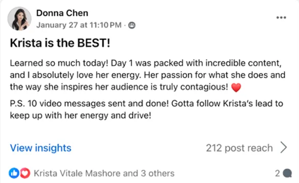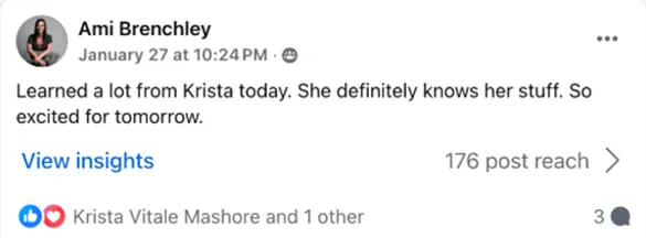 Please check your inbox for our email: "Action Needed 🚨 Your spot saved for training with Krista Mashore" ...it includes the link for our training and your workshop bonuses. **If you don't see it right away, please check your spam/promotions folder.
